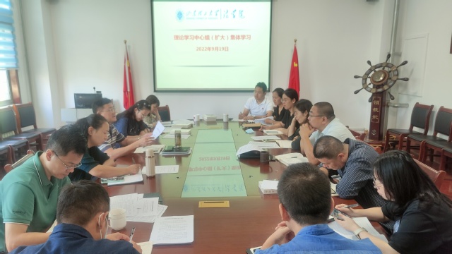 9月19日上午,学院理论学习中心组(扩大)在2#310组织集体学习学校第四次党代会精神。中心组成员、各系/室主任、党支部书记、科级以上干部参加,院党委书记张宗磊主持会议。