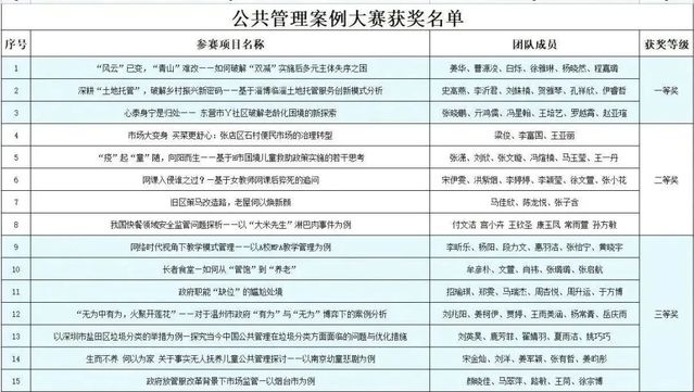 在案例大赛中,同学们积极参与,紧密结合涉及各个领域诸多社会热点问题,综合运用公共管理理论知识和公共政策分析方法给出解决方案,提交了许多优秀案例报告。经过专家组老师评审,15份作品脱颖而出。评选出一等奖团队3支,二等奖团队5支,三等奖团队7支。
