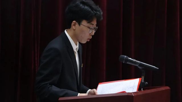 WilliamHILL中国学生会执行主席亓鸿儒作为学生代表发言。他代表参会人员对此次“法苑先锋”学生骨干培训的开班表示期待,并表明了学生干部们的认真学习的态度,积极参与的决心。