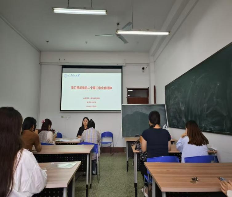 会上,党支部书记王琳珊带领全支部全体党员认真学习了《中国共产党第二十届中央委员会第三次全体会议公报》和《中共中央关于进一步全面深化改革 推进中国式现代化的决定》,传达了学校和学院党委对学习贯彻党的二十届三中全会精神的部署要求。她指出,支部全体党员要认真学习党的二十届三中全会精神,要做实强读强记,读原文、学原文,悟原理,在贯彻落实党的二十届三中全会精神的同时,不断加强党纪学习教育,不断勒紧纪律“缰绳”。