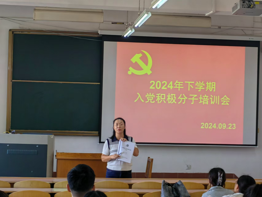 李兰晶老师首先介绍了党的基本知识和入党流程,强调党的纪律和规矩的重要性,并重点指导了如何正确填写入党积极分子手册,为他们的党员发展之路提供了明确指引。她强调,手册是记录入党积极分子学习、成长和进步的重要载体,必须认真填写,确保内容的真实性、完整性、规范性和准确性,要求字迹清晰、内容条理分明,避免出现错别字或漏填漏报的情况。同时,她要求各位同学要不断加强政治学习,提高政治素养,积极参与党组织的各项活动,增强组织纪律性,努力学习专业知识,不断提升自己,在行动上践行党的宗旨,从身边的小事做起,争做符合要求的优秀青年。