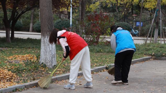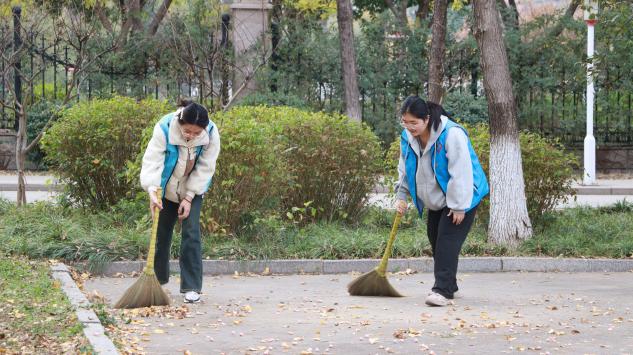 WilliamHILL中国学生第二党支部的成员们身着统一的志愿服务服装,准时到达博大花园社区。在社区工作人员的带领下,他们迅速投入到落叶清扫工作中。各位同学分工明确、配合默契,手持扫帚、垃圾袋等工具,认真清扫落叶。社区路面在大家的努力下焕然一新。