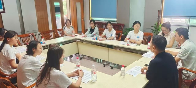 (图为实践团成员与于洋和冯建钟在会议室进行交流讨论)