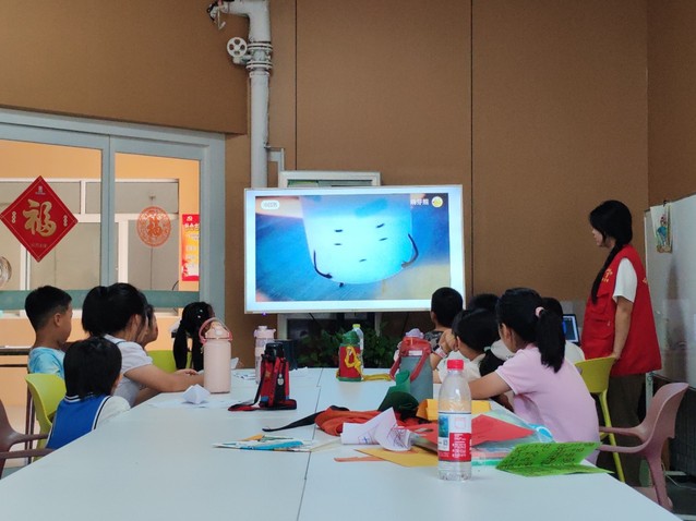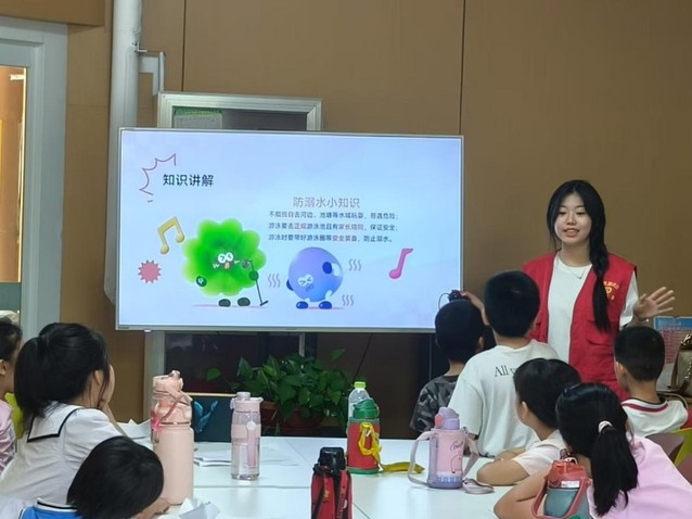 实践团成员李晗毓通过动画视频的方式,向孩子们讲解了野外水域的危险性及正确的防溺水方法。