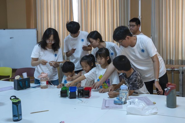 (图为实践团成员协助学生们完成二十四节气版桌游)