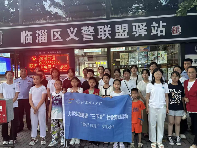 (图为实践团成员在临淄区义警联盟驿站的合影)