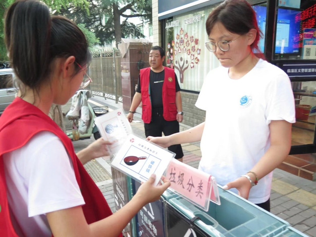 (图为实践团成员在义警联盟驿站组织“垃圾分类”小游戏)
