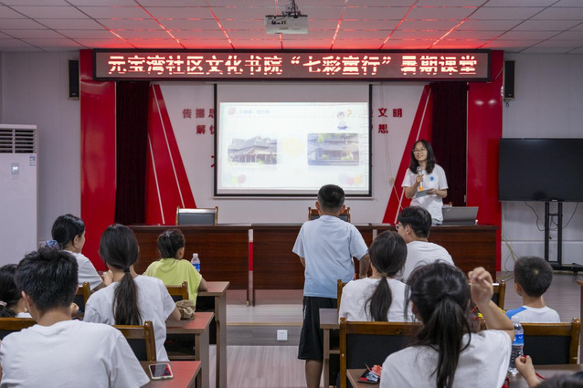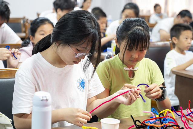 在“听古建筑讲故事”环节,实践团成员高子雯以“找不同”游戏切入,为学生们讲解南北建筑的差异及影响因素。她还为学生们讲解了中国传统建筑——故宫以及中国古代建筑元素——月洞门,加深学生们对于古建筑的理解。活动进入体验阶段,学生们用扭扭棒搭建古建筑模型。