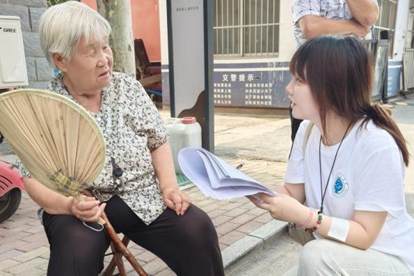(图为“齐稷社工实践团成员在社区街头开展问卷调查)