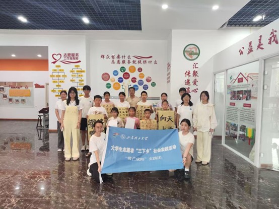 (图为实践团成员们在益齐公益书法课堂的合影)
