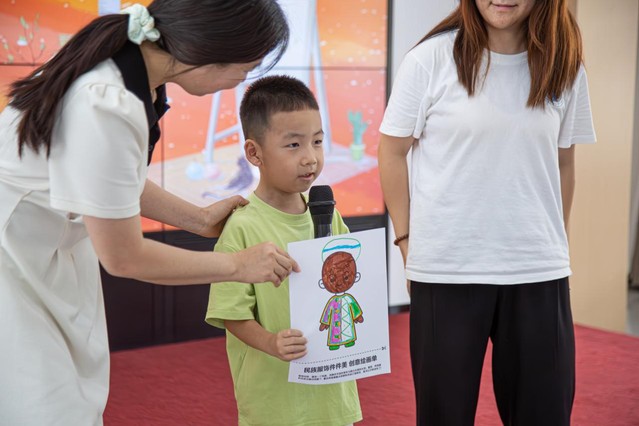知识讲解结束后,实践团成员向学生分发卡纸与水彩笔,并指导学生将参考课件与想象结合,创作自己心目中的民族服饰。绘画完成后,学生们展示分享各自的作品,还互相交流了创作思路和对民族服饰的理解。