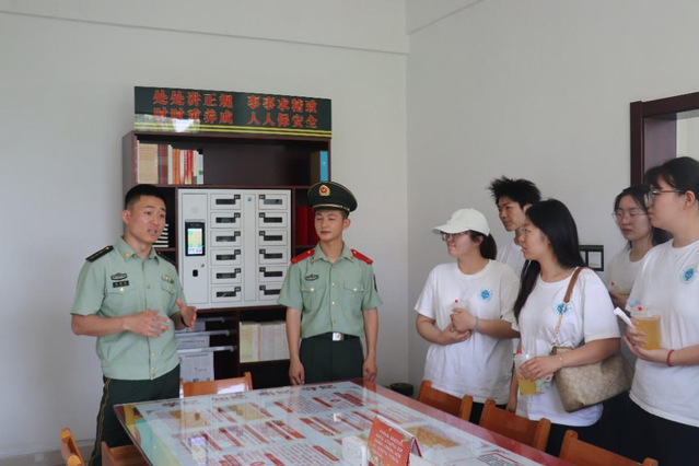在班长的引导下,实践团成员踏入支队荣誉馆,“全国武警标兵中队”、“集体一等功”、“雨中救痴儿,恩情永未尽”的锦旗,每一份荣誉都熠熠生辉。
