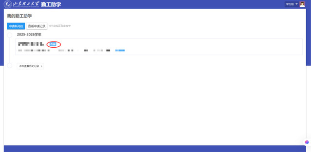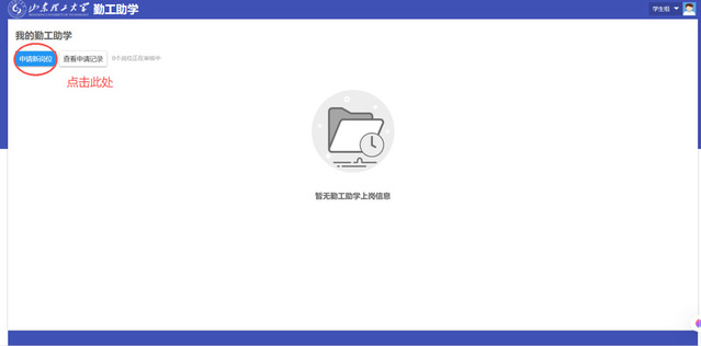 (5)点击“我的勤工助学”跳转界面后,点击“申请新岗位”。