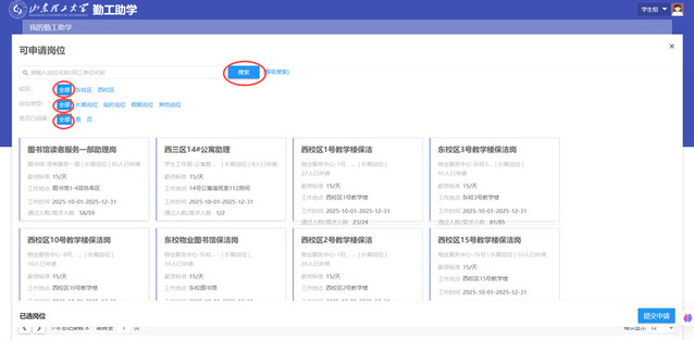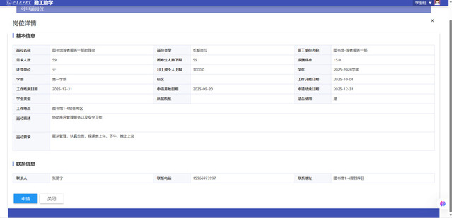 (3)校区问题:不同岗位所处校区不同,在申请时务必要留意一下岗位所在校区,避免申请到其他校区岗位。