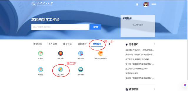 (4)点击“学生服务”后,选中“勤工助学”板块。
