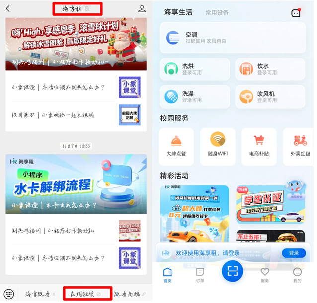 2.或者可以在微信小程序或公众号“海享租”线上租赁: