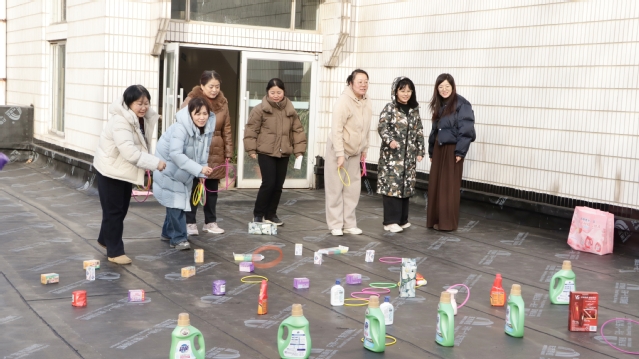 趣味运动会共设置“毽”康第一、爱之守“壶”、小李飞镖及“圈圈”初心四项趣味活动。教师们彩毽翻飞,镖起靶落,套圈投壶,重温童趣。活动现场气氛轻松愉悦,满是欢声笑语。